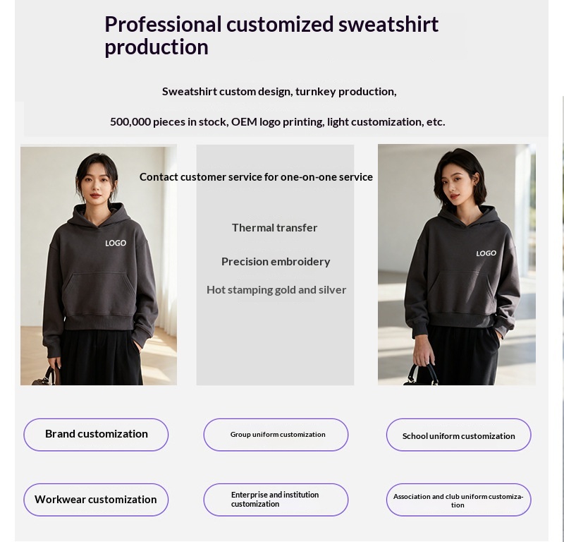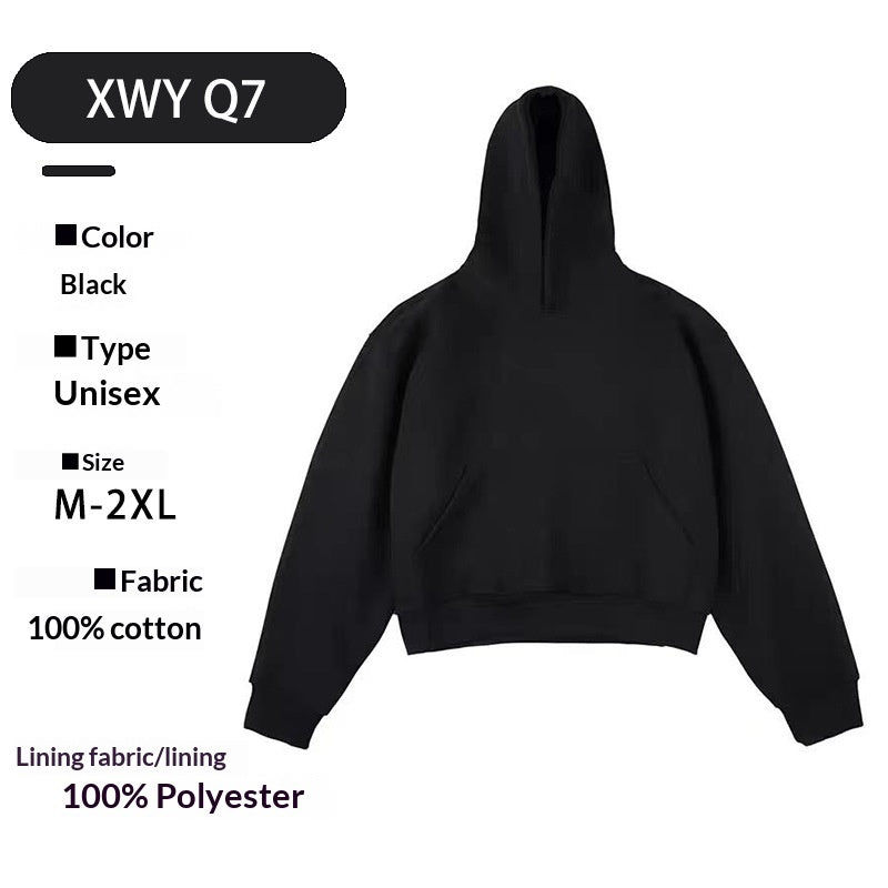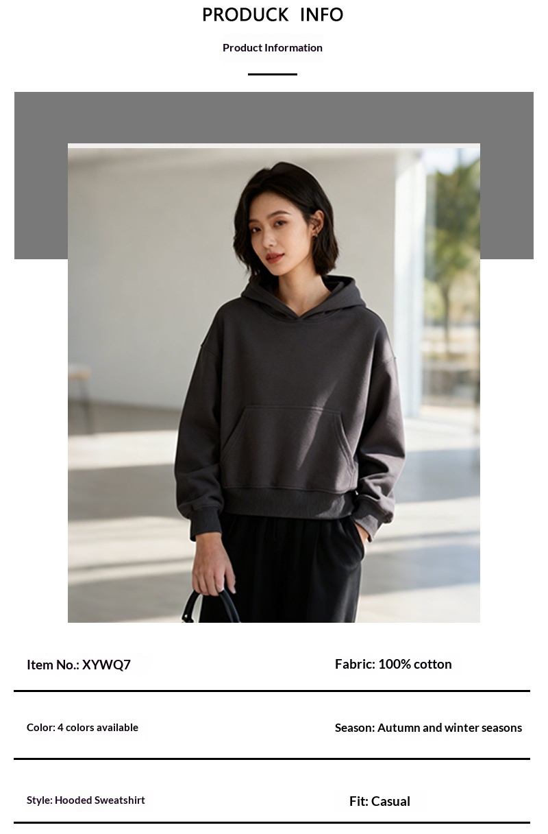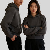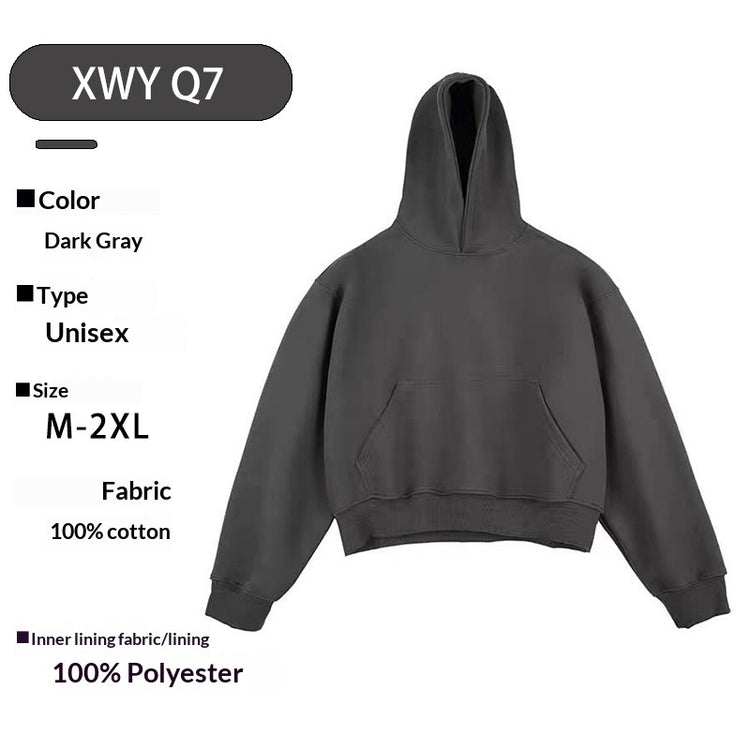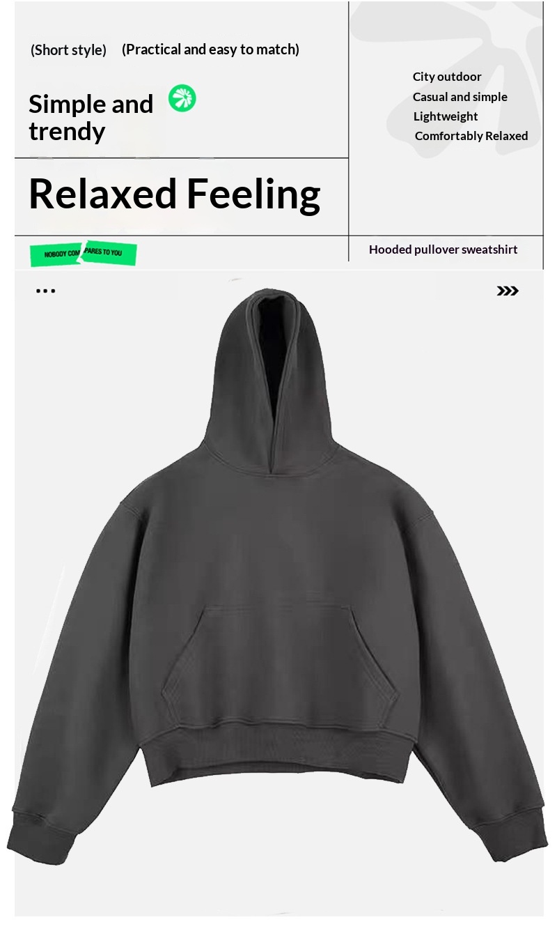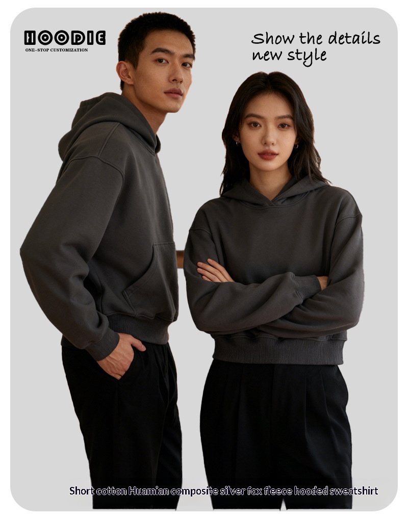 Loose Padded Cropped American High-street Style Fleece-lined Hooded Sweatshirt