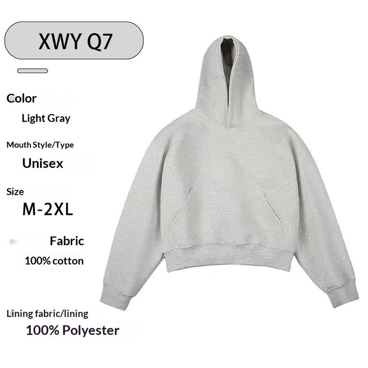 Loose Padded Cropped American High-street Style Fleece-lined Hooded Sweatshirt
