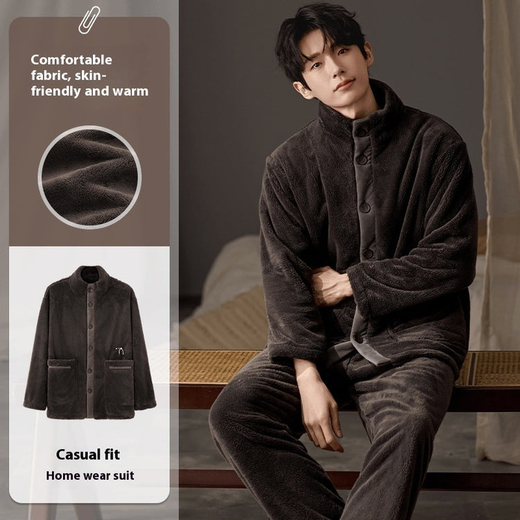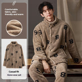 Men's Pajamas Plus Size Long Sleeve Warm Loungewear Suit